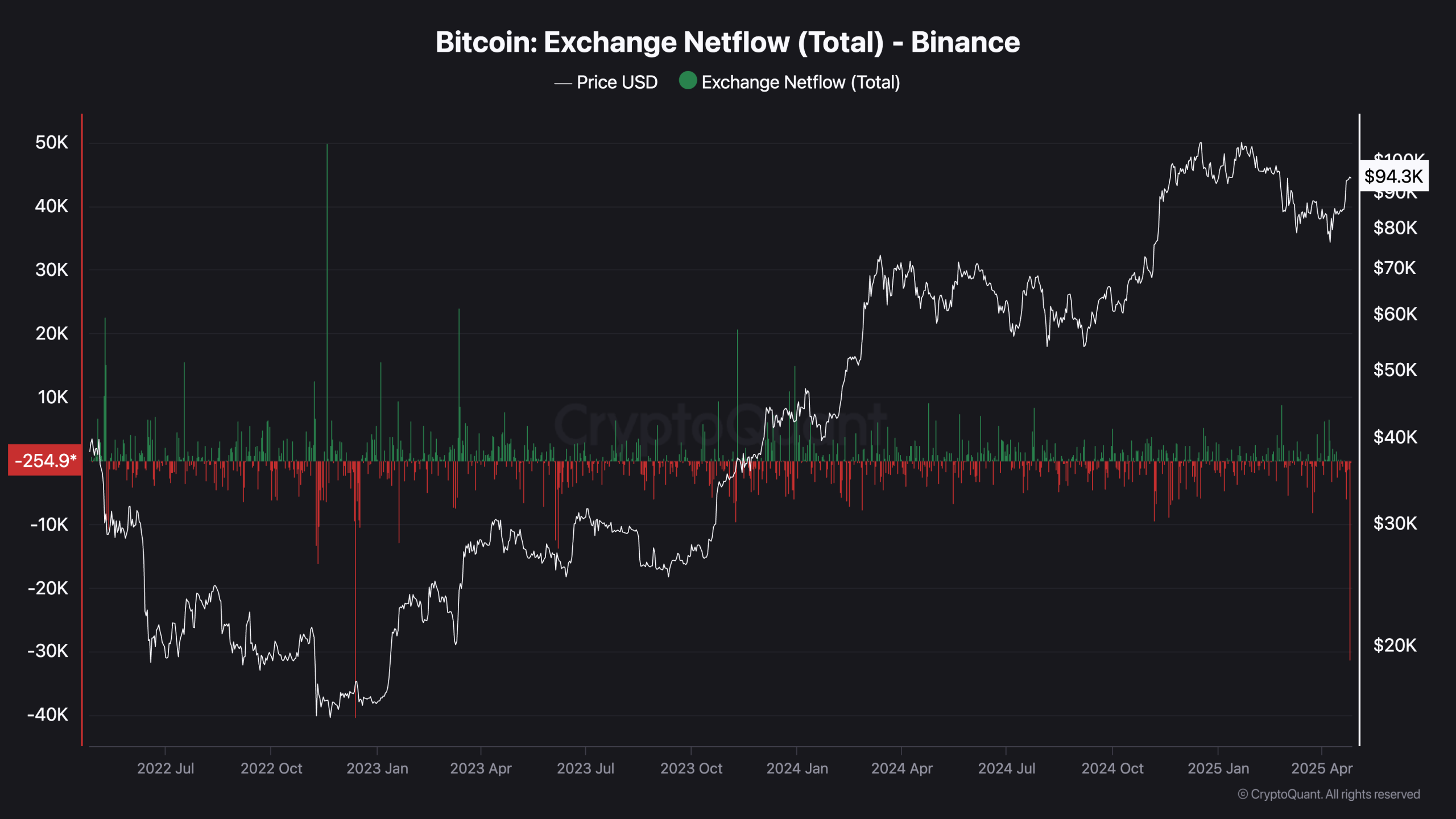 Portalkripto.com – The Bitcoin market is once again flashing signs of turbulence after Binance, one of the world’s largest exchanges, recorded a massive outflow of 27,750 BTC on Friday, April 25, 2025. This marks the third-largest Bitcoin outflow in Binance’s history, raising the question: is a major price move on the horizon?