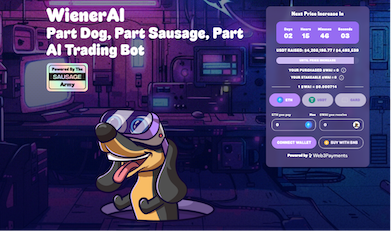 Dua narasi terbesar saat ini, kecerdasan buatan (AI) dan blockchain dikombinasikan dengan karakter anjing dan sosis yang unik oleh WienerAI. Token utilitas ini menawarkan sebuah teknologi bot perdagangan yang akan menjadi teman baik untuk seluruh trader.