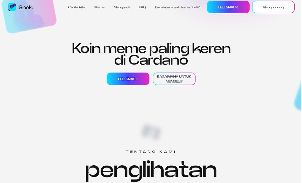 Snek (SNEK) adalah koin meme yang sedang tren yang dihosting di blockchain Cardano yang mencap dirinya sebagai “koin meme paling keren di Cardano”.