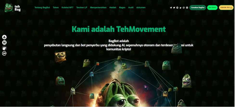 tehBAG (BAG) bertujuan untuk menawarkan peluang koin meme yang unik melalui integrasi kecerdasan buatan (AI) dan pemasaran media sosial yang inovatif.