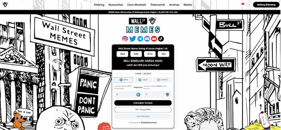 Daftar teratas dari koin meme baru yang harus diperhatikan minggu ini adalah Wall Street Memes (WSM), proyek presale yang sedang tren yang diluncurkan oleh pencipta Wall St Bulls NFT.