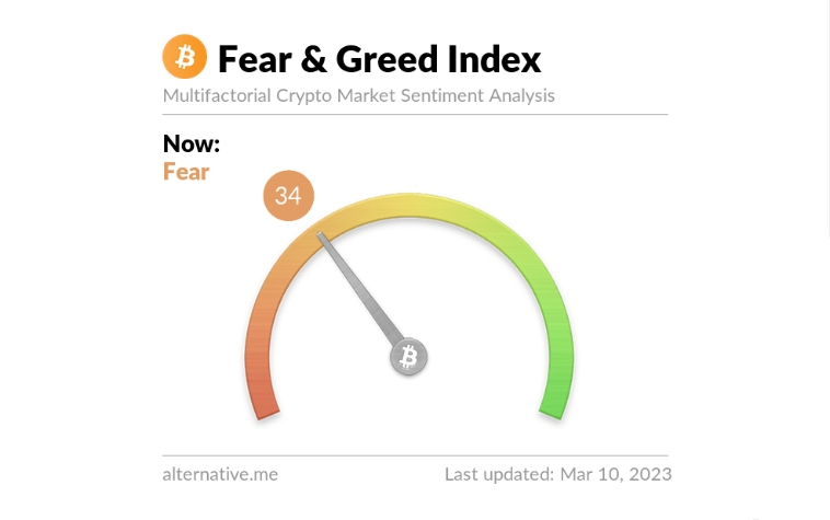Bitcoin Fear & Greed Index menunjukan kondisi investor kripto saat ini berada dalam status Fear. Artinya, investor diselimuti ketakutan. Level Fear dalam indikator bahkan turun 10 angka dari 44 sehari lalu menjadi 34 pada hari ini. Angka tersebut ada di pertengahan menuju kategori Extreme Fear alias kekalutan ekstrem.