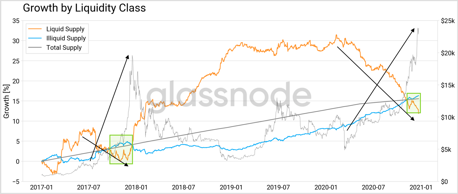 Jumlah Bitcoin yang tidak likuidĀ ini meningkat sejak tahun 2020. Dan di awal tahun 2021 peningkatannya semakin tajam.Ā