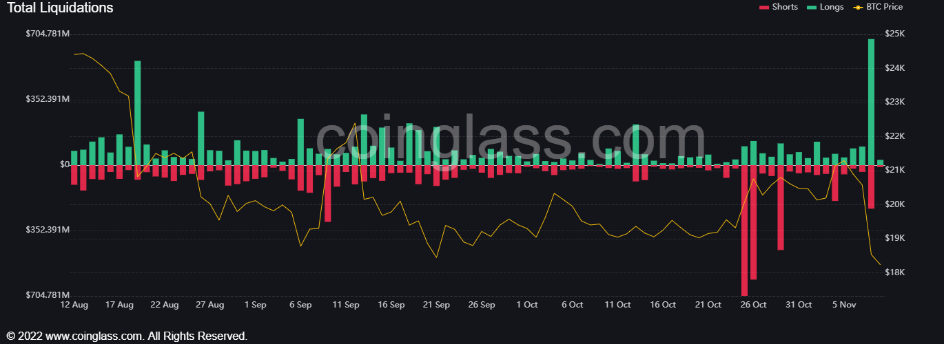 Total, ada sebanyak $914,681 Juta ter-likudasi dari market futures pada penutupan kandil harian, 8 November 2022.