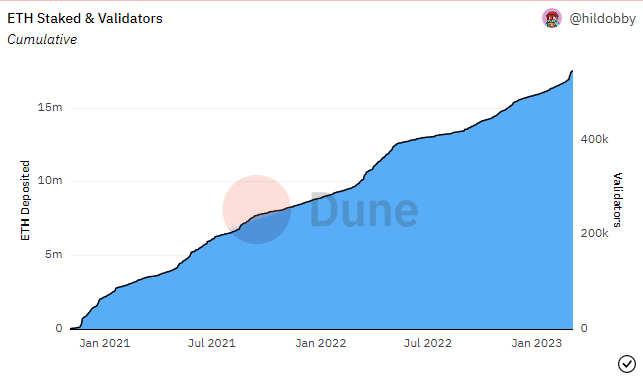 Sejak staking ETH dimulai pada Desember 2020, sudah ada 17,5 juta ETH senilai $28,7 miliar yang disimpan di jaringan Ethereum. Jumlah itu setara dengan 14,5% dari semua ETH yang beredar.