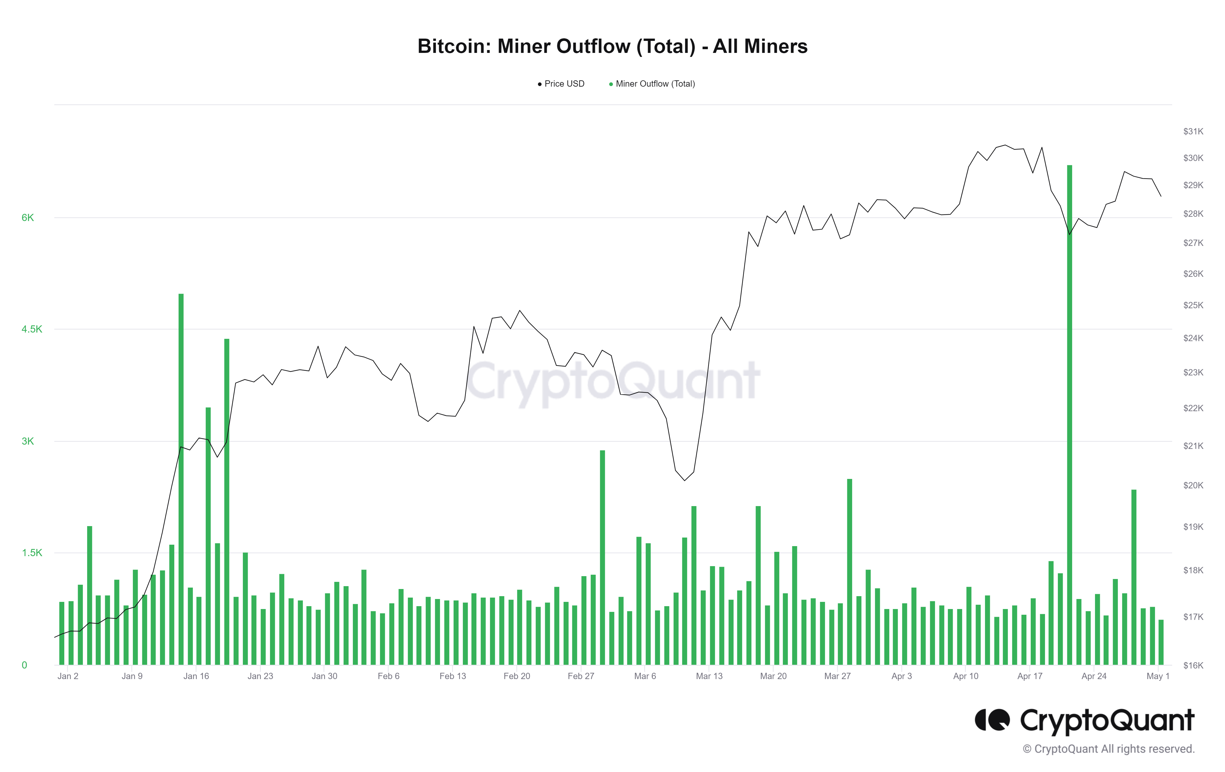 Laporan tersebut didukung oleh data on-chain pada Bitcoin Miner Outflow. Tercatat sebanyak 6.700 BTC keluar dari dari wallet yang terafiliasi sebagai penambang Bitcoin.