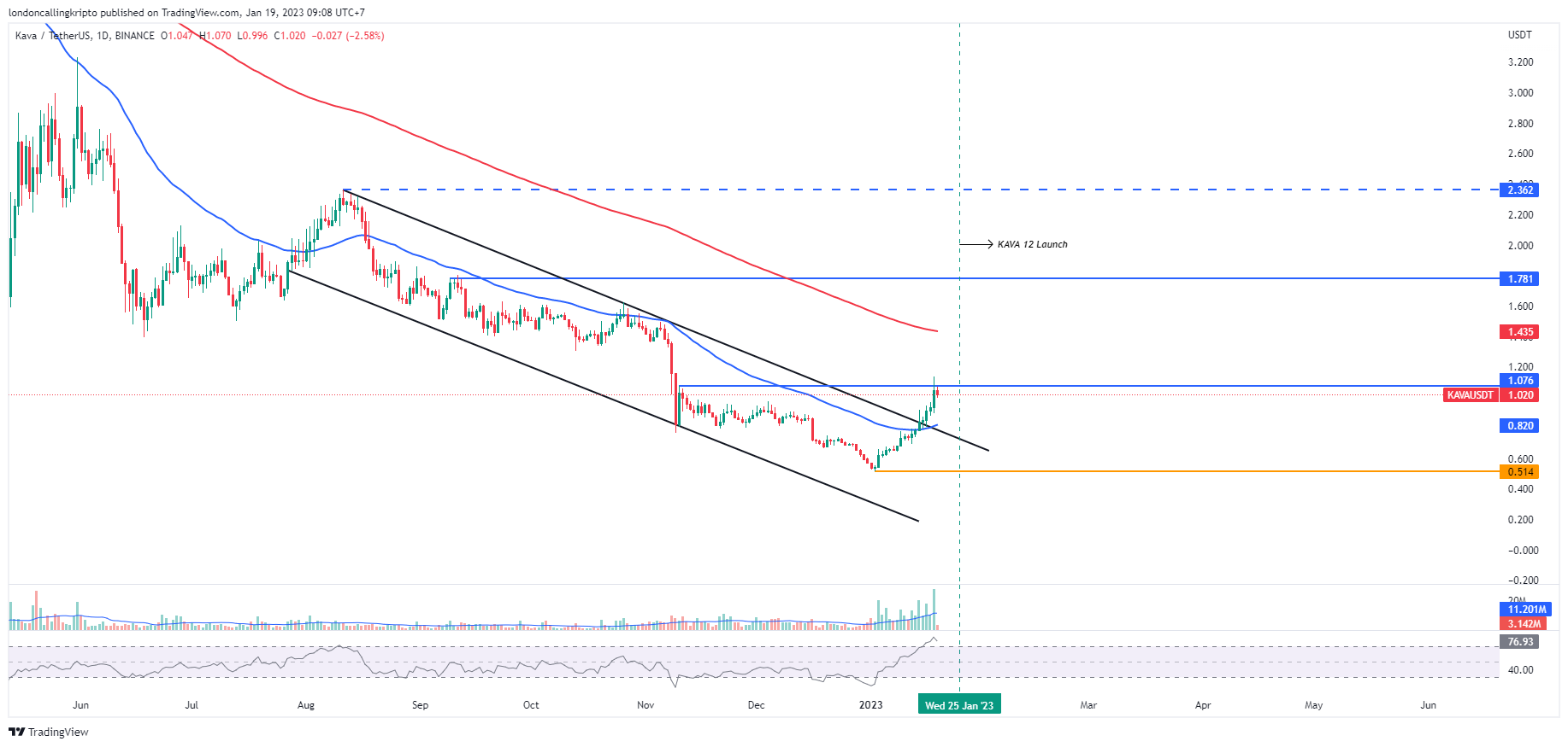 KAVA mempunyai agenda penting yang akan diselenggarakan pada 25 Januari, yaitu KAVA 12 Launch. Hal tersebut bisa menjadi fundamental positif untuk ekosistem dan pergerakan harga.