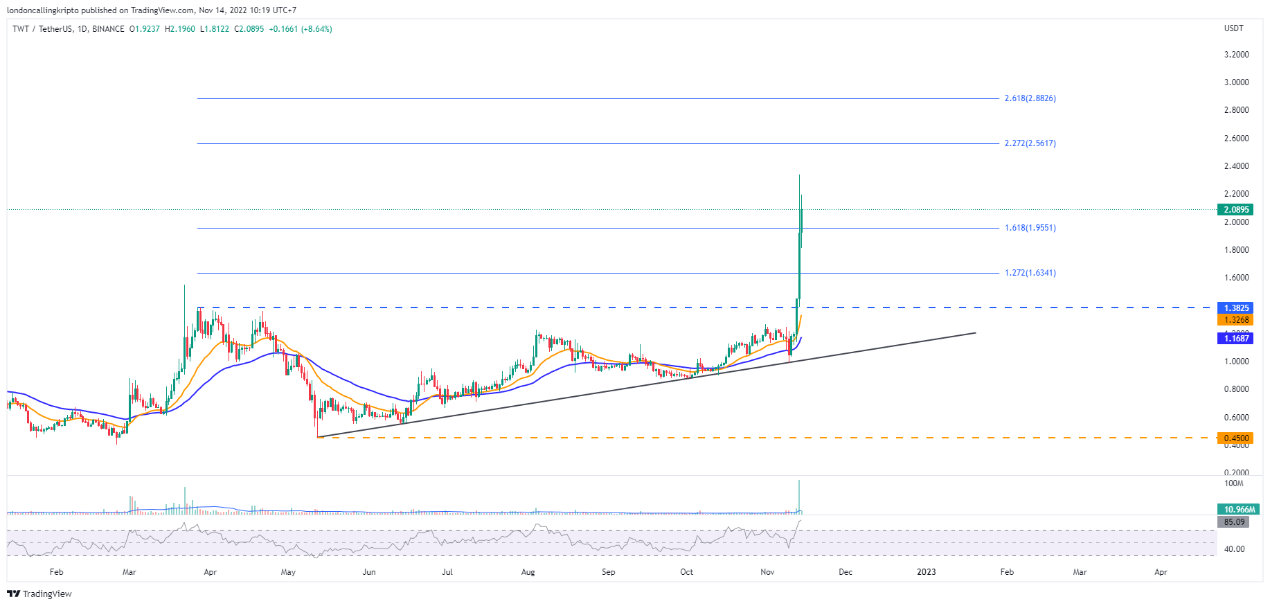 TWT/USDT daily chart Binance. Source: TradingView. By: Arli Fauzi