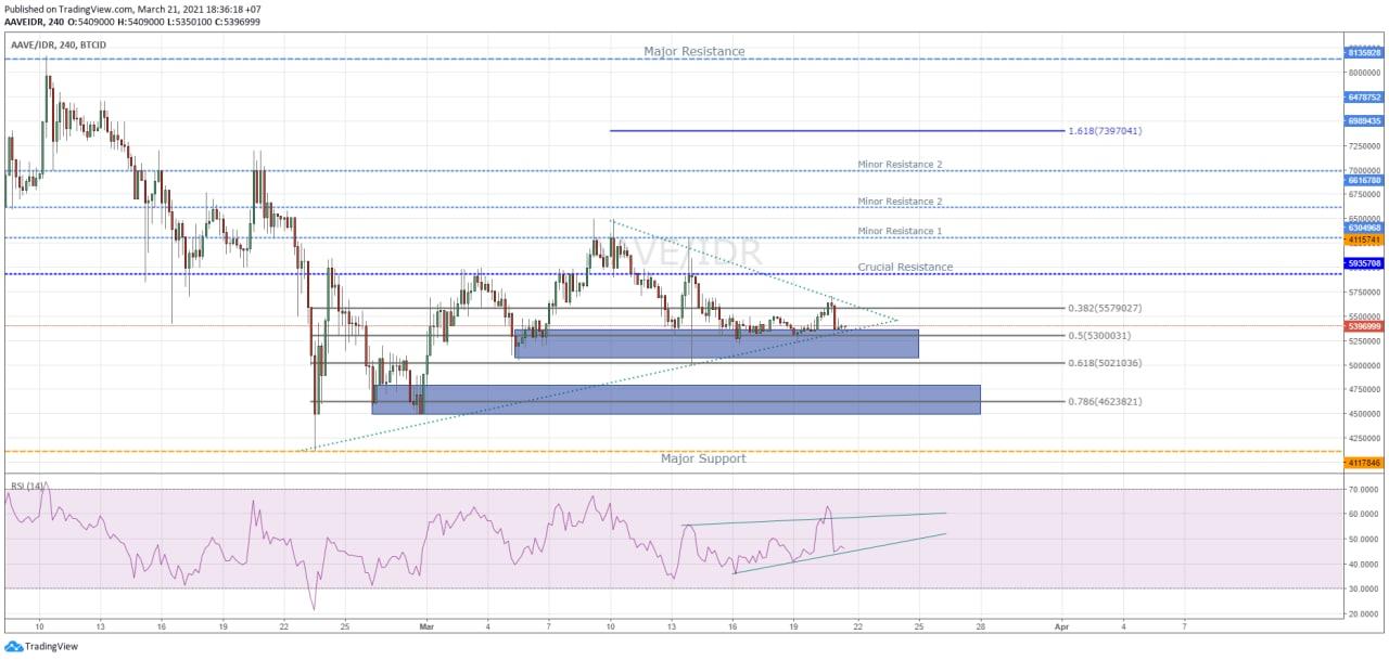 Apabila pergerakan harga Bitcoin (BTC) mendukung dan pergerakan harga Aave (AAVE) dapat menembus crucial resistance-nya pada harga Rp 5,932,314, maka pergerakan harga Aave (AAVE) kembali bullish dan mendekati resistance selanjutnya. Apakah pergerakan harga Aave (AAVE) akan mampu breakout trend nya yang sedang sideways atau akan kembali mengalami koreksi terlebih dahulu?