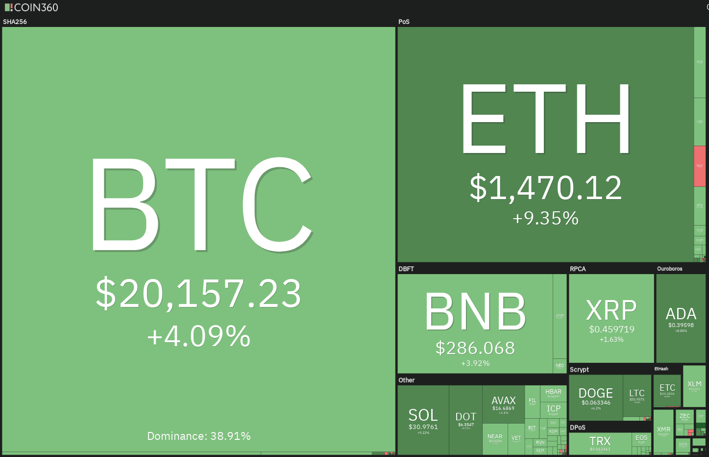 Bitcoin berhasil naik tajam (pump) dan breakout 20-day exponential moving average (EMA). Kandil harian Bitcoin ditutup hijau dengan kenaikan sebesar 3,88%.