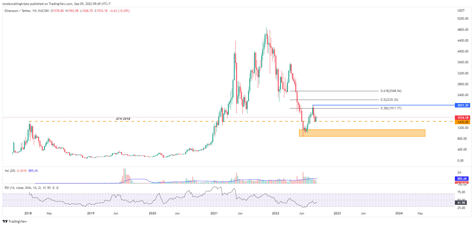 ETH/USDT weekly chart Kucoin. Source: TradingView. By: Arli Fauzi