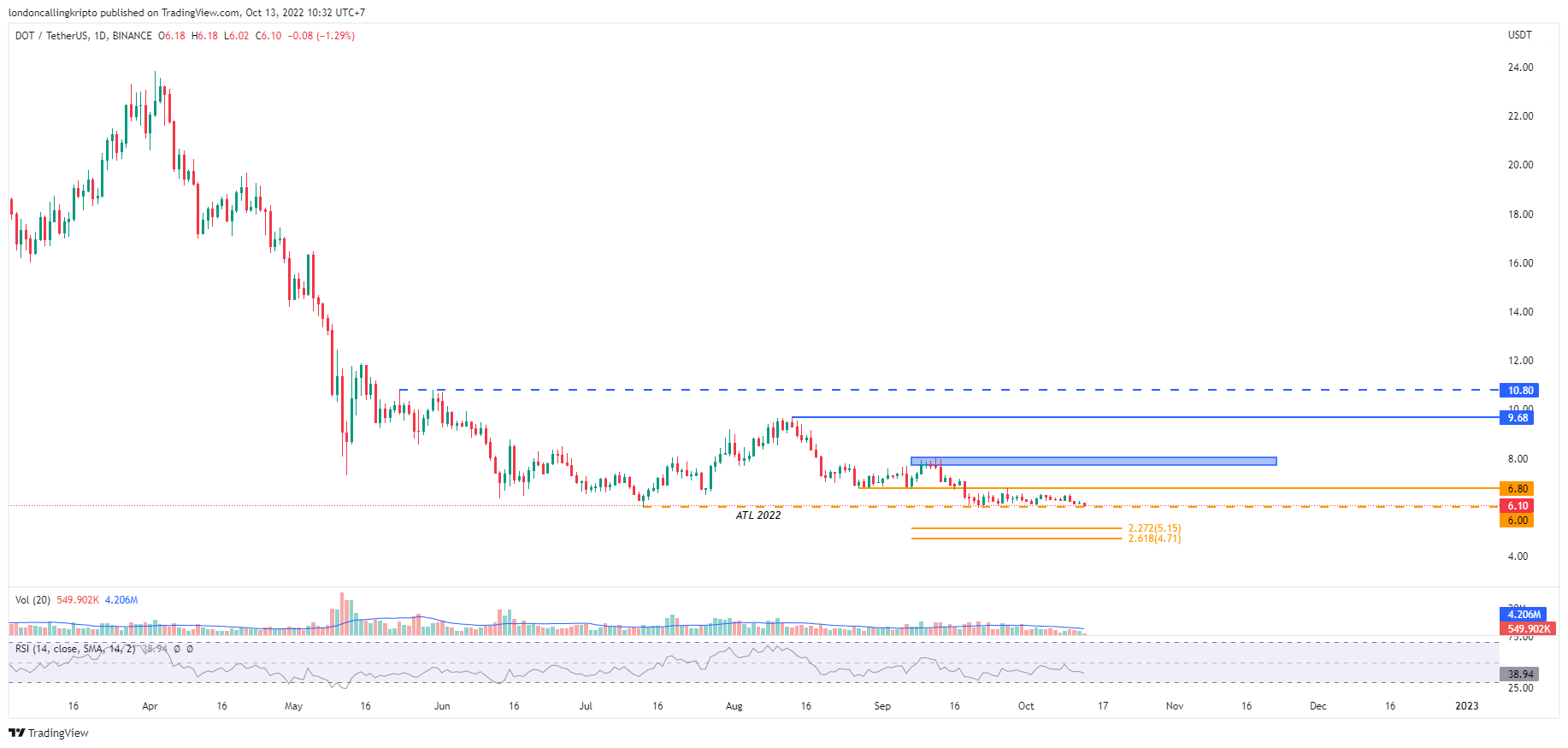 DOT/USDT daily chart Binance. Source: TradingView. By: Arli Fauzi