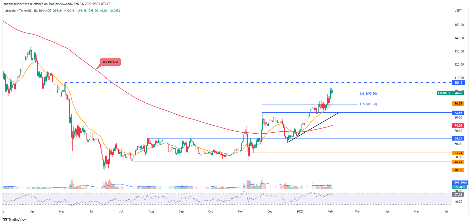 LTC/USDT daily chart Binance. Source: TradingView. By: Arli Fauzi.