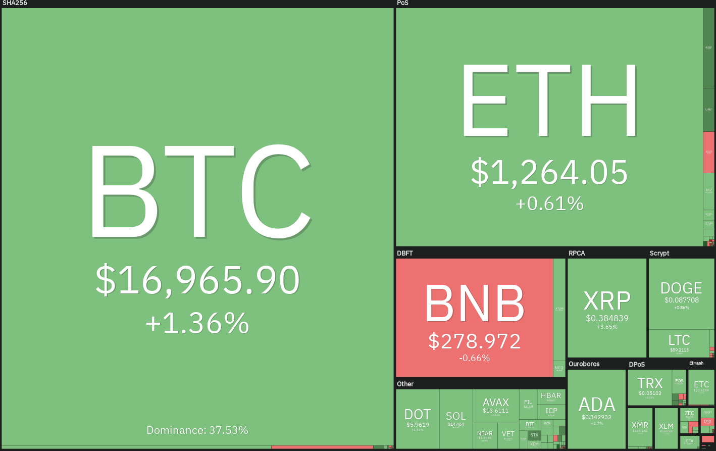 Laju naik kemungkinan akan berlanjut apabila pergerakan harga Bitcoin berhasil titik tersebut. 20-Day exponential moving average (EMA) di level $18.301 menjadi target naik selanjutnya.