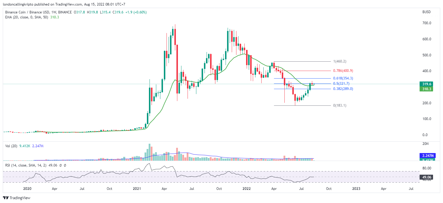 BNB/BUSD weekly chart. Source: TradingView. By: Arli Fauzi