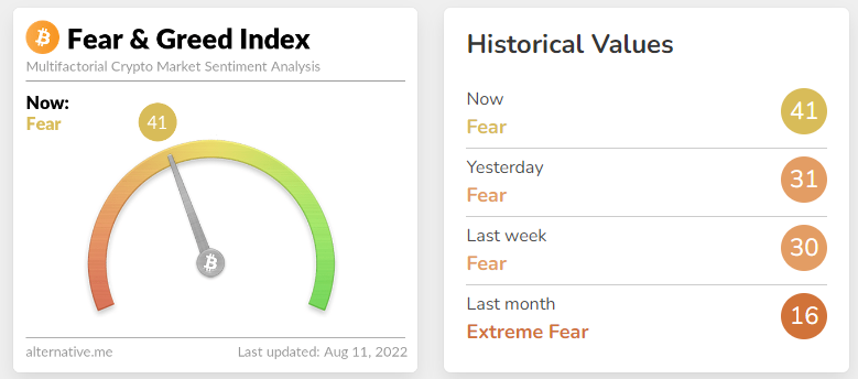 Crypto fear and greed index ditutup positif dengan mengalami kenaikan sebesar 10 poin menjadi 41. Meskipun kategori masih berada di level fear, tetapi terlihat sentimen market kripto mulai positif.