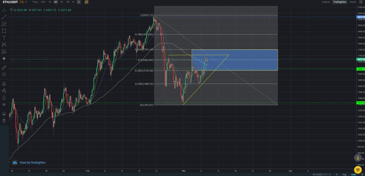 Seperti yang kita ketahui kondisi ETH pada saat ini masih termasuk Bearish, apabila pergerakan market harga ETH bisa break Harmonic Resistance 3, yang merupakan Golden Ratio nya , maka kemungkinan trend secara garis besar pada market ETH akan bergerak BULLISH.