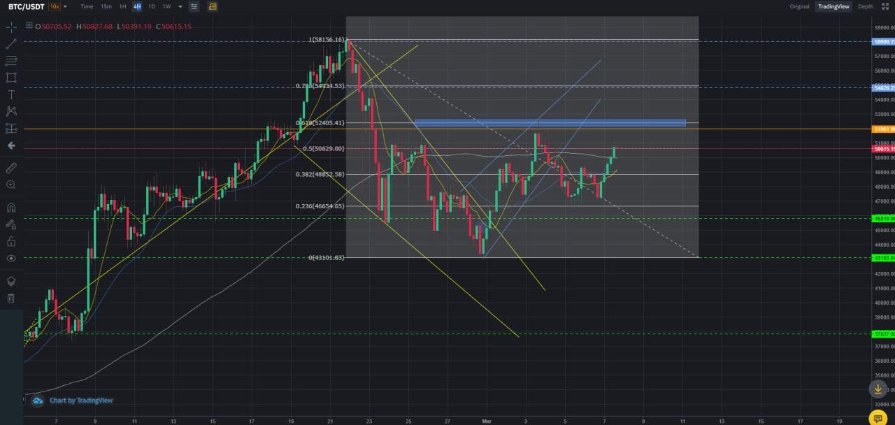 Apakah malam ini harga Bitcoin mampu break dari US$50,600 dan lanjut ke US$52,400, atau bahkan break resistance terkuatnya dan lanjut terbang tinggi, atau akan terjadi penolakan / rejection pada harga US$50,600 atau US$52,400.