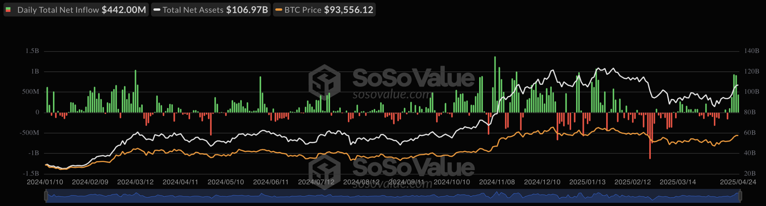 Total Bitcoin Spot ETF Net Inflow via SosoValue