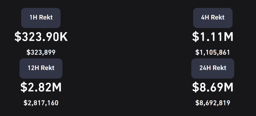 Data Coinglass juga menunjukkan PEPE menjadi token yang paling banyak dilikuidasi dalam beberapa hari terakhir. Per 9 Mei, total likuidasi terhadap PEPE dalam 24 jam terakhir mencapai $8,5 juta.