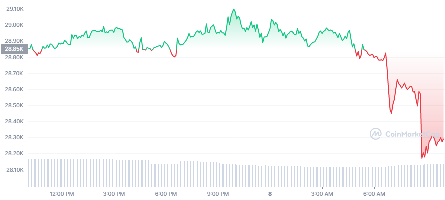 Harga Bitcoin juga terpantau turun. Sejak Binance mengumumkan penangguhan penarikan Bitcoin, BTC sudah anjlok 2%. Data CoinMarketCap menunjukkan, BTC kini diperdagangkan di harga $28.200.
