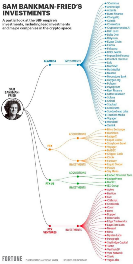 Dana FTX tersebar ke beberapa proyek kripto saat perusahaan yang didirikan Sam Bankman-Fried itu tengah berusaha menyelamatkan ekosistem setelah ambruknya Terra/Luna pada Mei lalu. FTX juga telah melakukan sejumlah akuisisi dan bailout.