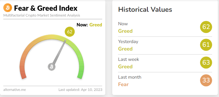 Sebenarnya grafik Bitcoin Market Stages ini berkesinambungan dengan indikator lain, seperti Fear and Greed Index. Sentimen perilaku investor saat ini terpantau masih bergerak stabil di kisaran level 60-63 dengan kategori Greed.