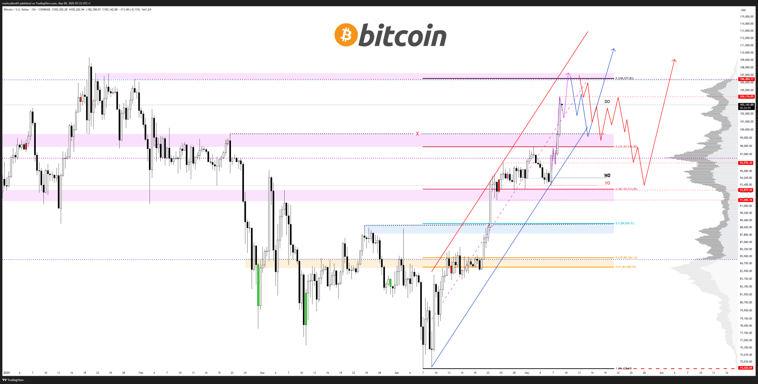 Crypto analyst AlphaBTC believes Bitcoin could still push higher in the short term. Referencing Fibonacci levels and an ascending price channel, he estimates BTC may reach $106,000 before facing strong resistance.