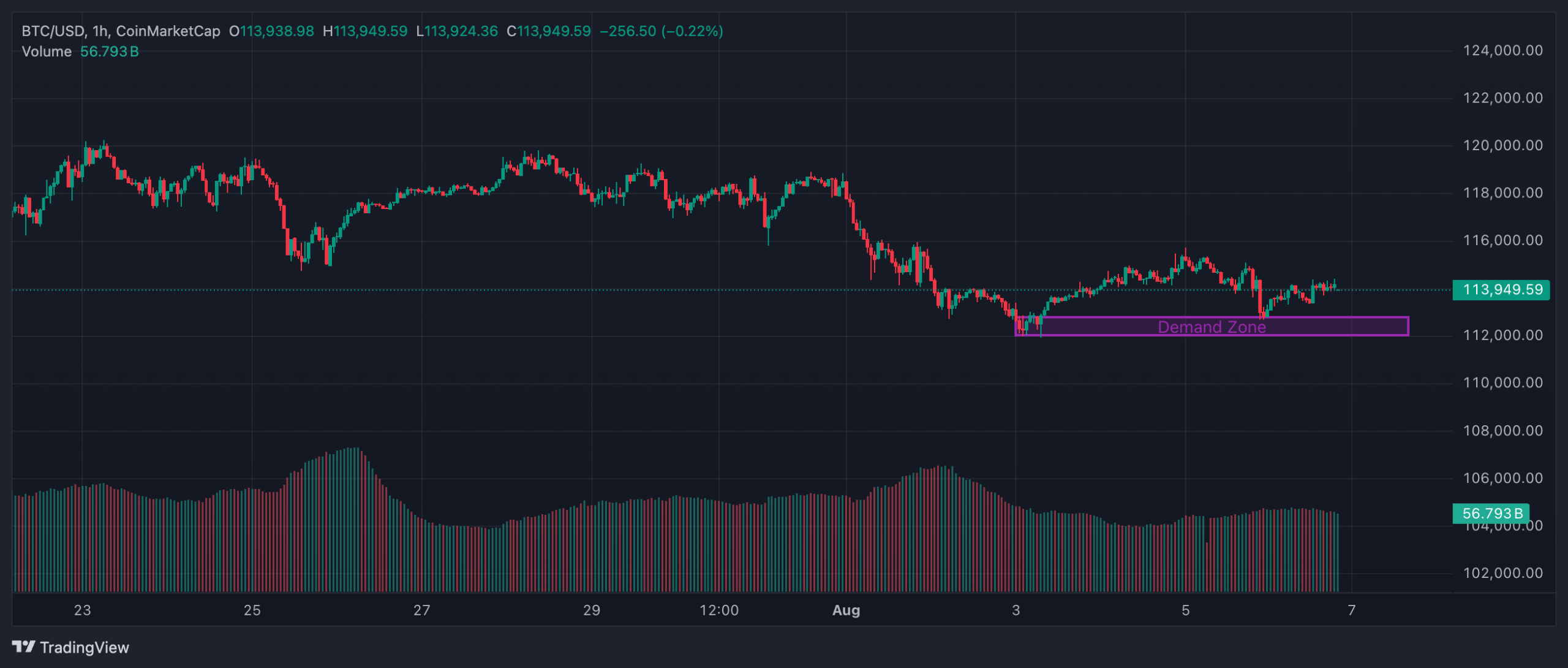Bitcoin (BTC) konsolidasi di kisaran $113.000 pada 6 Agustus 2025, mencoba menembus resistensi menuju $115.700.