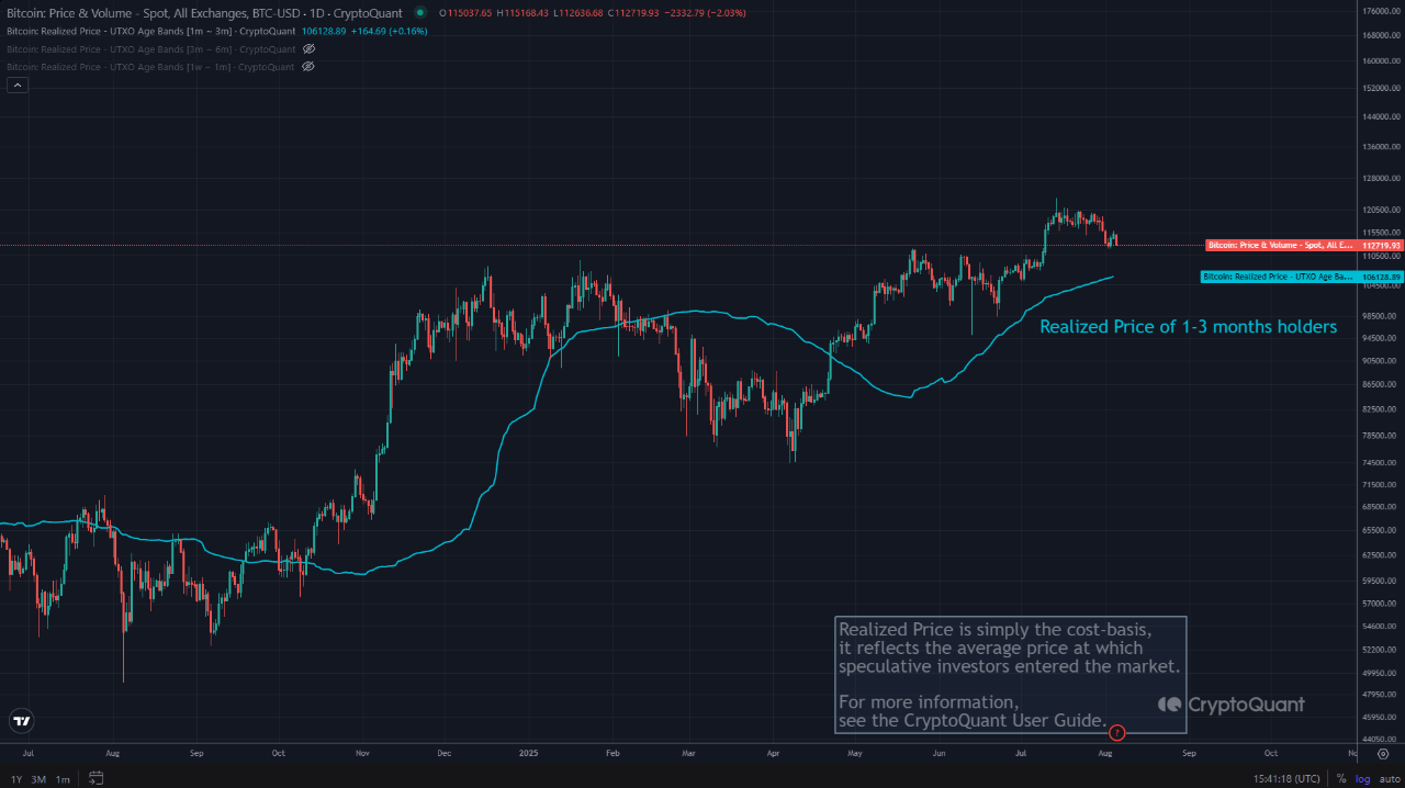 - Harga realisasi pemegang 1–3 bulan berada di dekat $106.000, mencerminkan harga beli rata-rata investor jangka menengah.