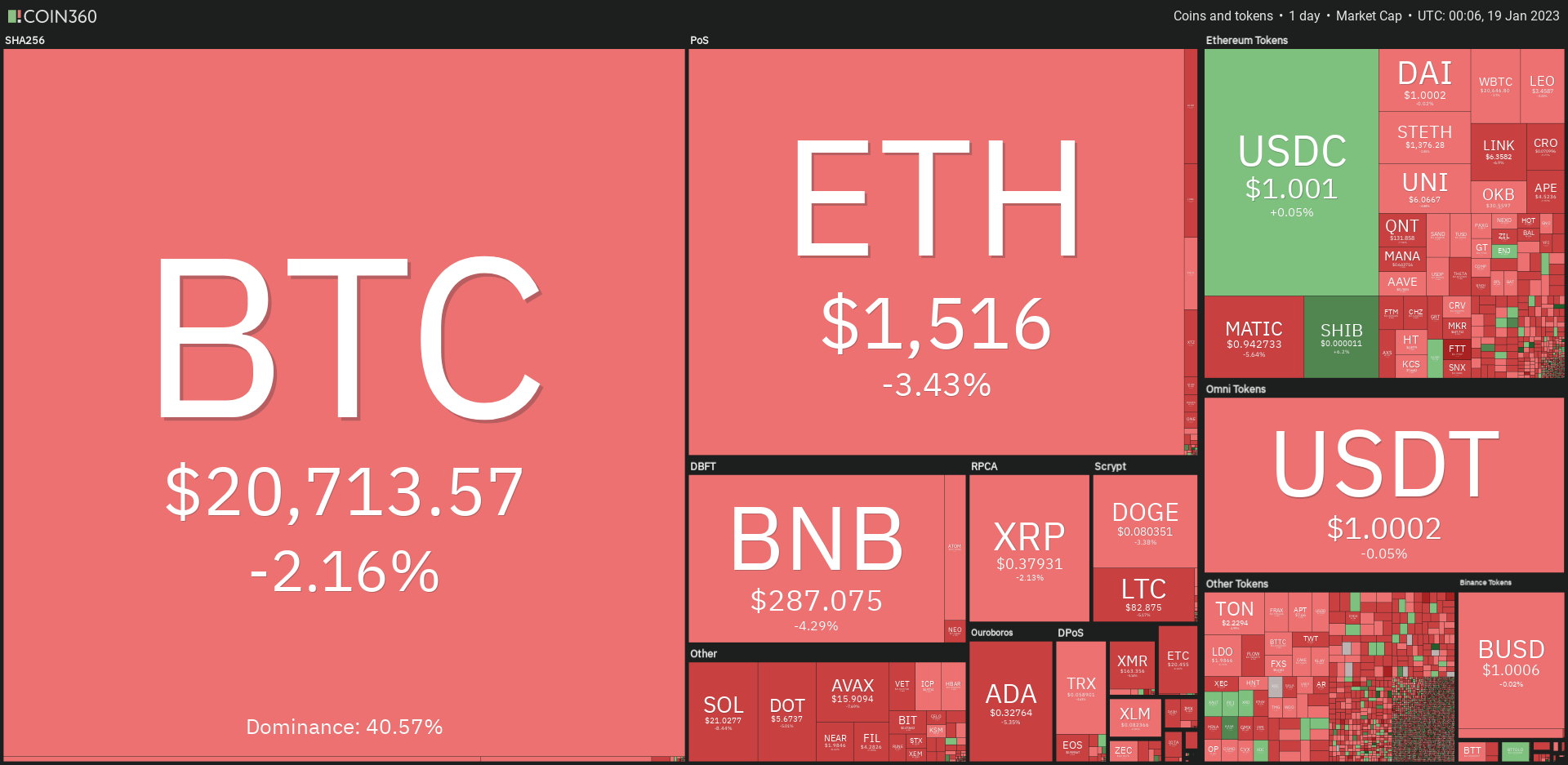Pergerakan harga Bitcoin berhasil breakdown 200-day EMA di level $20.986, dan menyentuh support terdekat di level $20.576.
