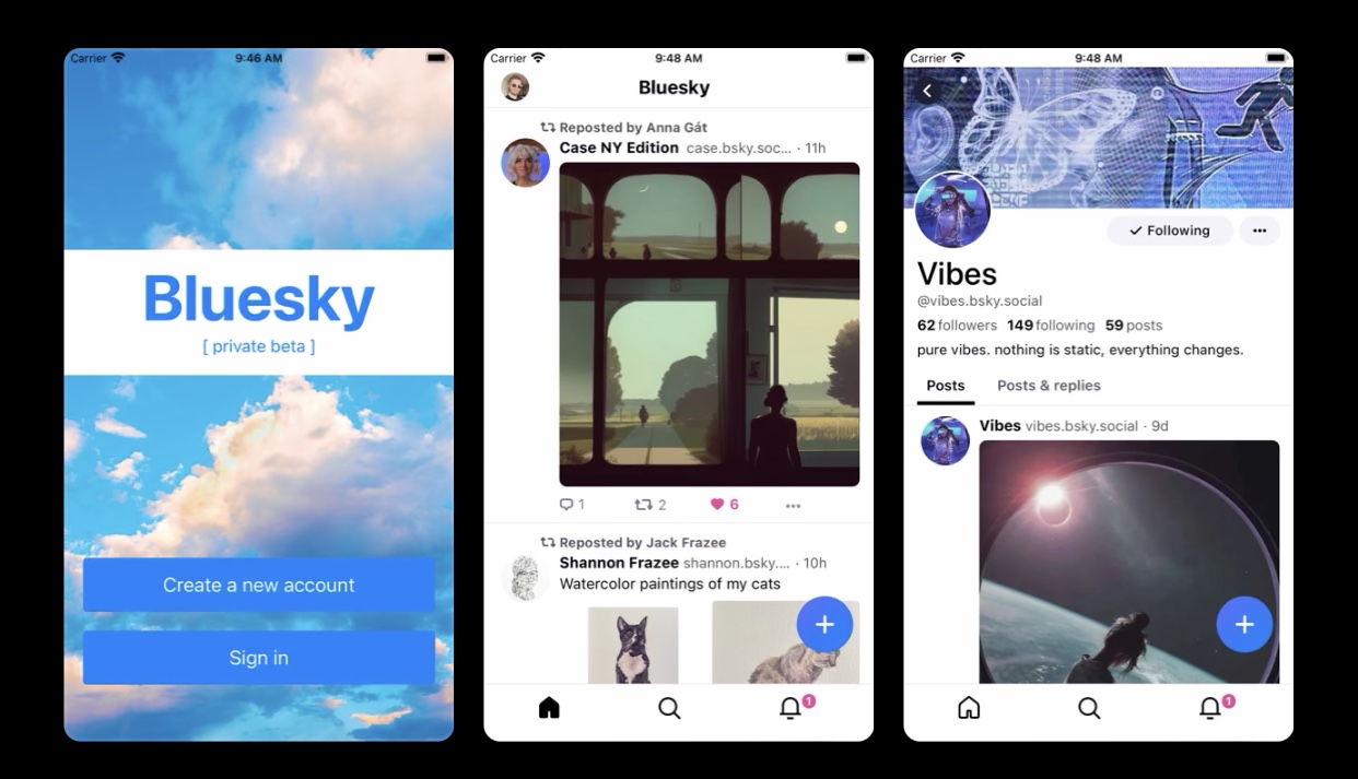 Media sosial terdesentralisasi ini resmi meluncurkan versi beta pada 17 Februari 2023 dan sudah diinstal 2.000 kali hingga 28 Februari. Pengguna bisa mengunduh aplikasi Bluesky di App Store Apple, tetapi hanya dapat membuat akun dengan invitation code.