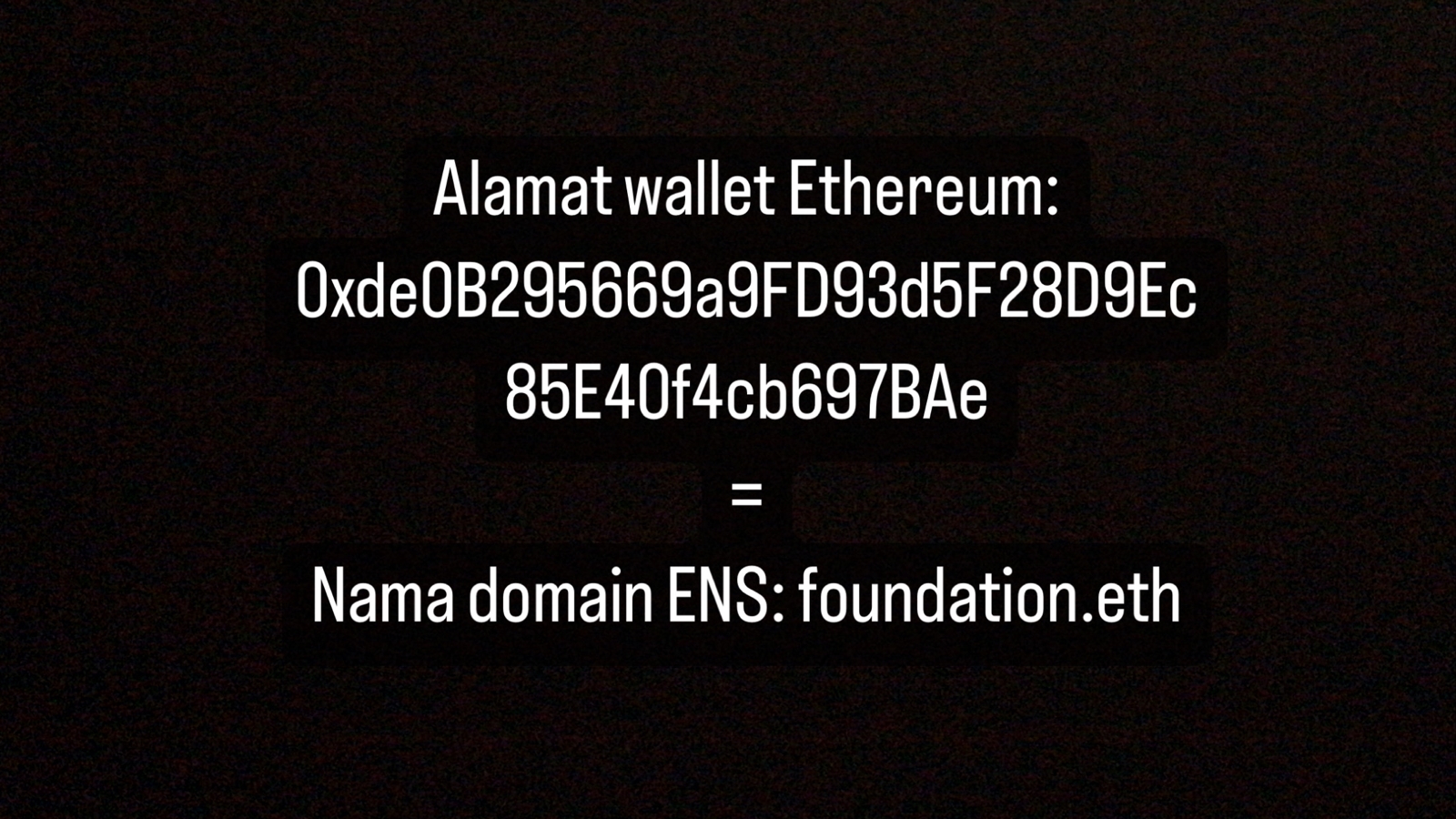 Misalnya, alamat wallet 0xde0B295669a9FD93d5F28D9Ec85E40f4cb697BAe dikonversi menjadi ‘foundation.eth’.
