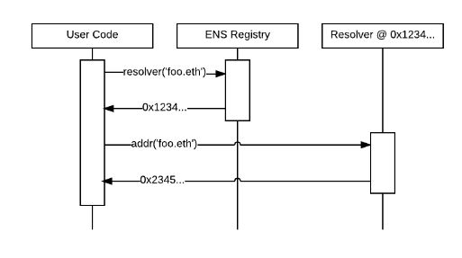 Sementara resolver bertugas untuk menerjemahkan nama domain menjadi alamat wallet aslinya. Seperti proses dalam bagan di bawah ini.