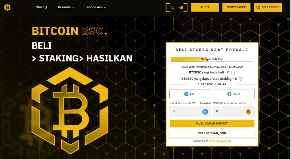 Peniru BTC baru yang disebut Bitcoin BSC (BTCBSC) juga mendapatkan banyak perhatian. Selama fase presale saat ini, BTCBSC telah mengumpulkan lebih dari $1,2 juta.