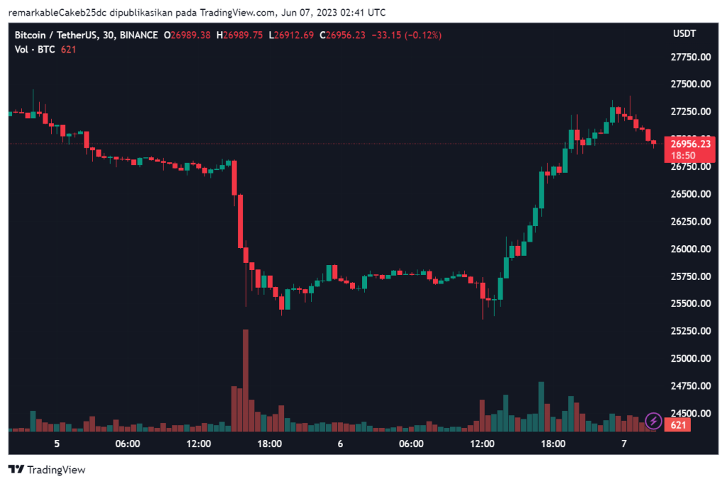 Buktinya, harga BTC malah pumping cukup tajam dengan level kenaikan hingga 5,5% dalam 24 jam terakhir. Terkini, harga BTC ada di kisaran $27.100 per 7 Juni 2023.