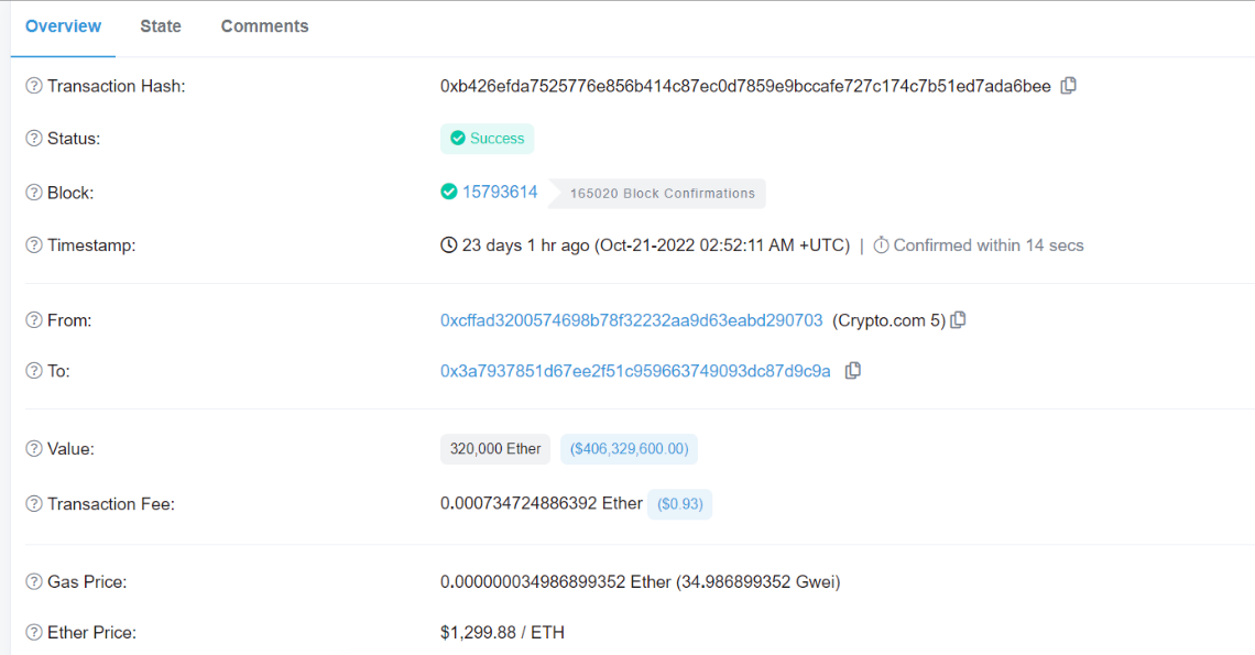 Menurut data Etherscan, pada 21 Oktober lalu, Crypto.com telah mentransfer 80% dari total cadangan ETH-nya ke exchange Gate.io. Insiden yang diklaim salah transfer ini terjadi beberapa hari sebelum Gate.io menyediakan data ‘proof of reserve’ kepada penggunannya pada 28 Oktober 2022.