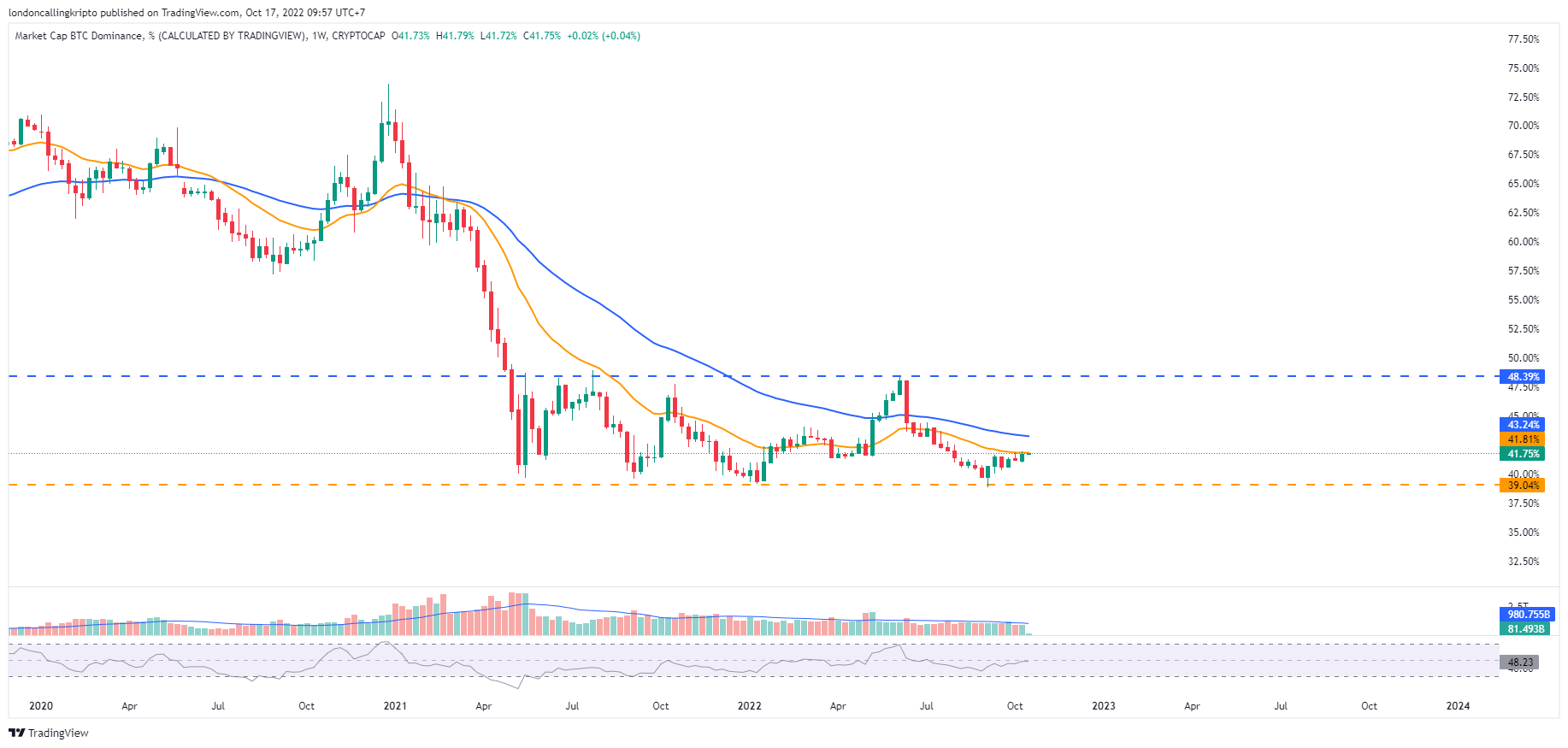 Market Cap Dominance weekly chart Cryptocap. Source: TradingView. By: Arli Fauzi