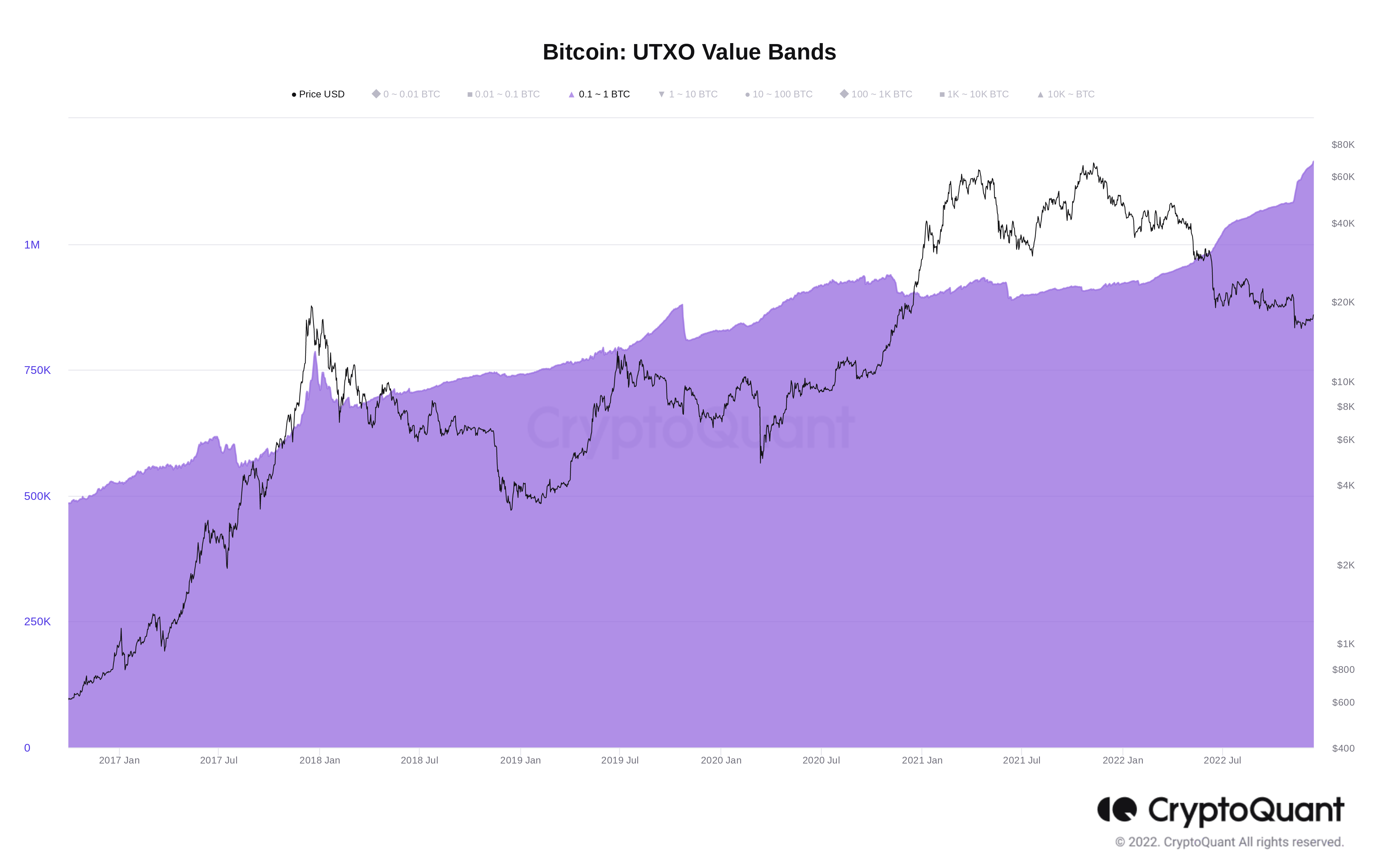 Data menunjukkan transaksi antara 0,1 BTC hingga 1 BTC melonjak pada kuartal empat 2022.