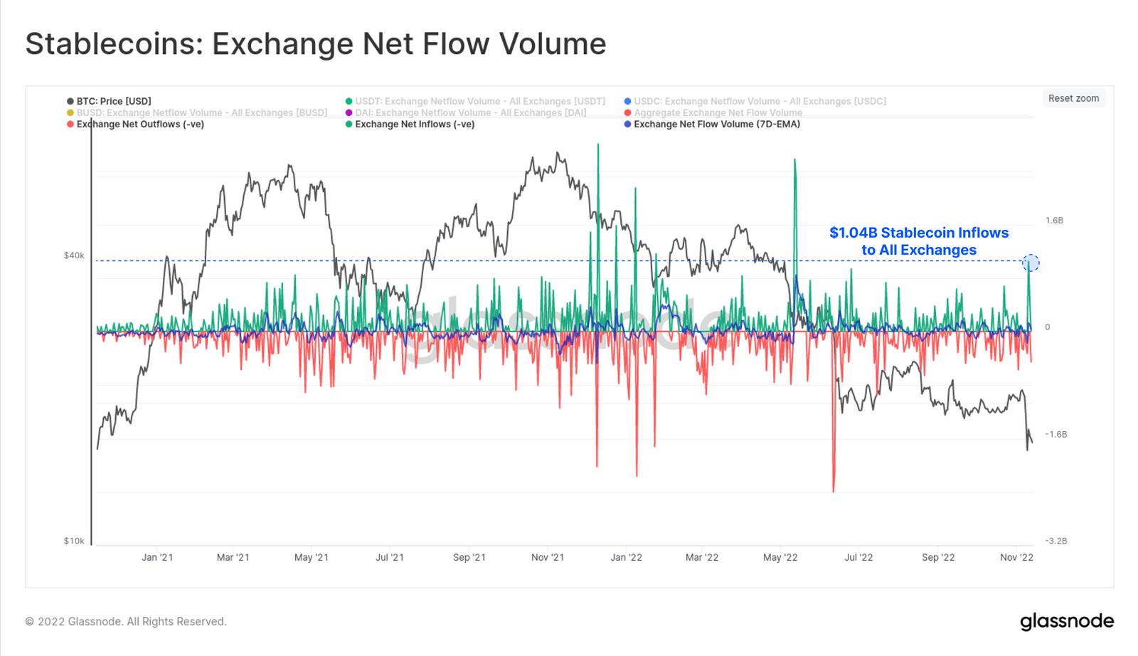 Pada 10 November 2022, stablecoin senilai $1,04 miliar atau sekitar Rp16 triliun tercatat masuk ke exchange. Stablecoin itu terdiri dari USDT, USDC, BUSD, dan DAI.