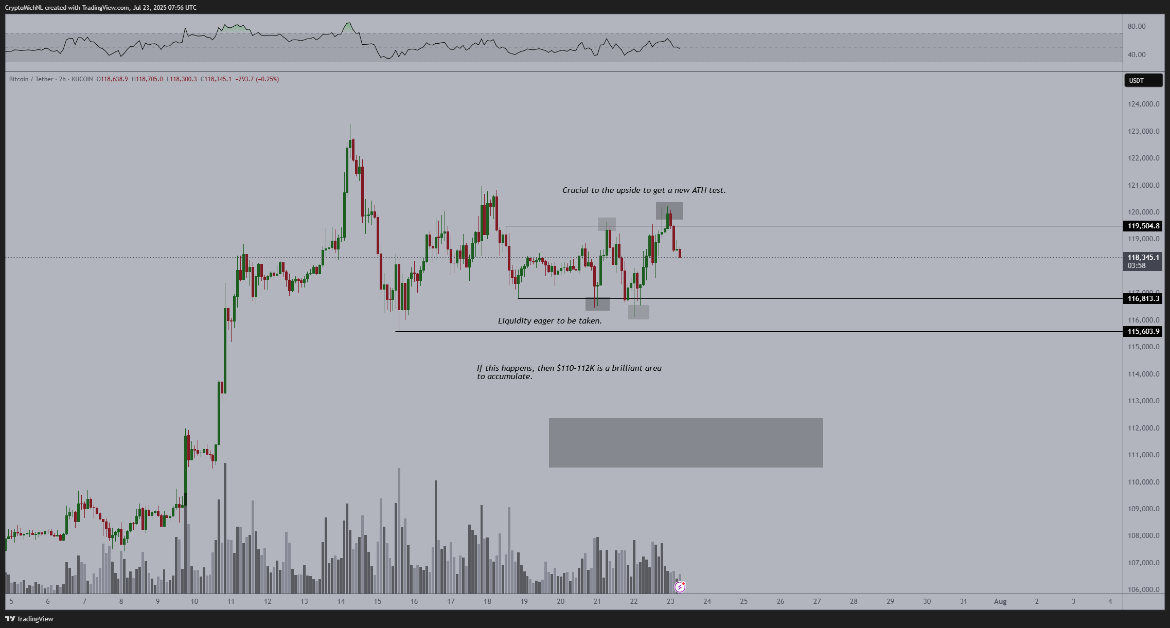 “Saya pikir kita mungkin melihat koreksi pendek sekitar 6–7%, yang akan membawa harga ke level 113K sebelum potensi dorongan naik berikutnya,” tulisnya.