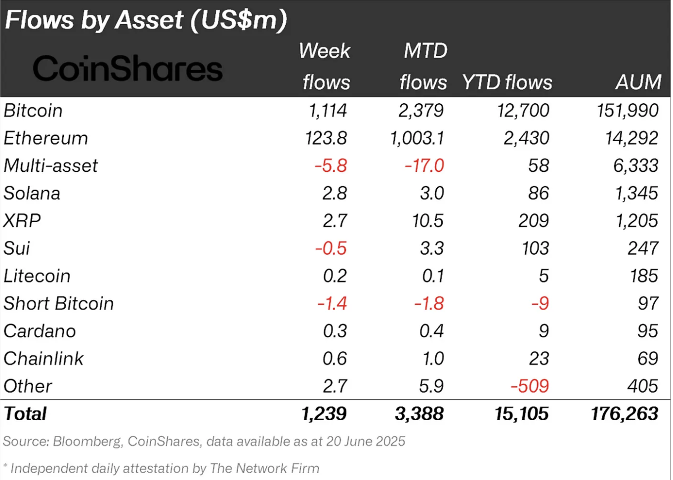 - Arus Dana Masuk: ETP kripto catat inflow $1,24 miliar; Bitcoin $1,1 miliar dan Ethereum $124 juta selama sembilan minggu berturut-turut.