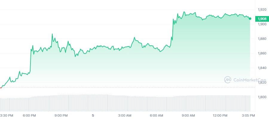 Portalkripto.com — Sepekan sebelum blockchain Ethereum melakukan upgrade Shanghai, harga Ether (ETH) naik pesat ke level $1.900 pada Rabu, 5 April 2023 pagi. Level ini merupakan yang tertinggi sejak delapan bulan lalu.