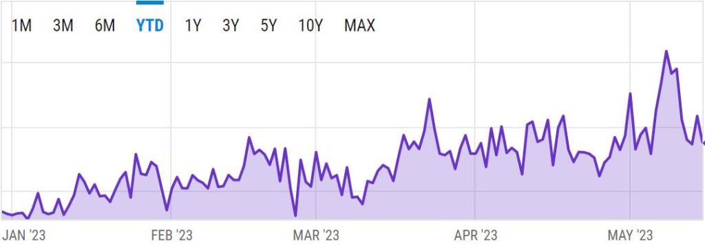 Redanya histeria BRC-20 ini ikut berdampak negatif terhadap penambang Bitcoin. Cuan yang mereka hasilkan dari validasi transaksi data di jaringan Bitcoin perlahan kembali ke level sebelumnya.