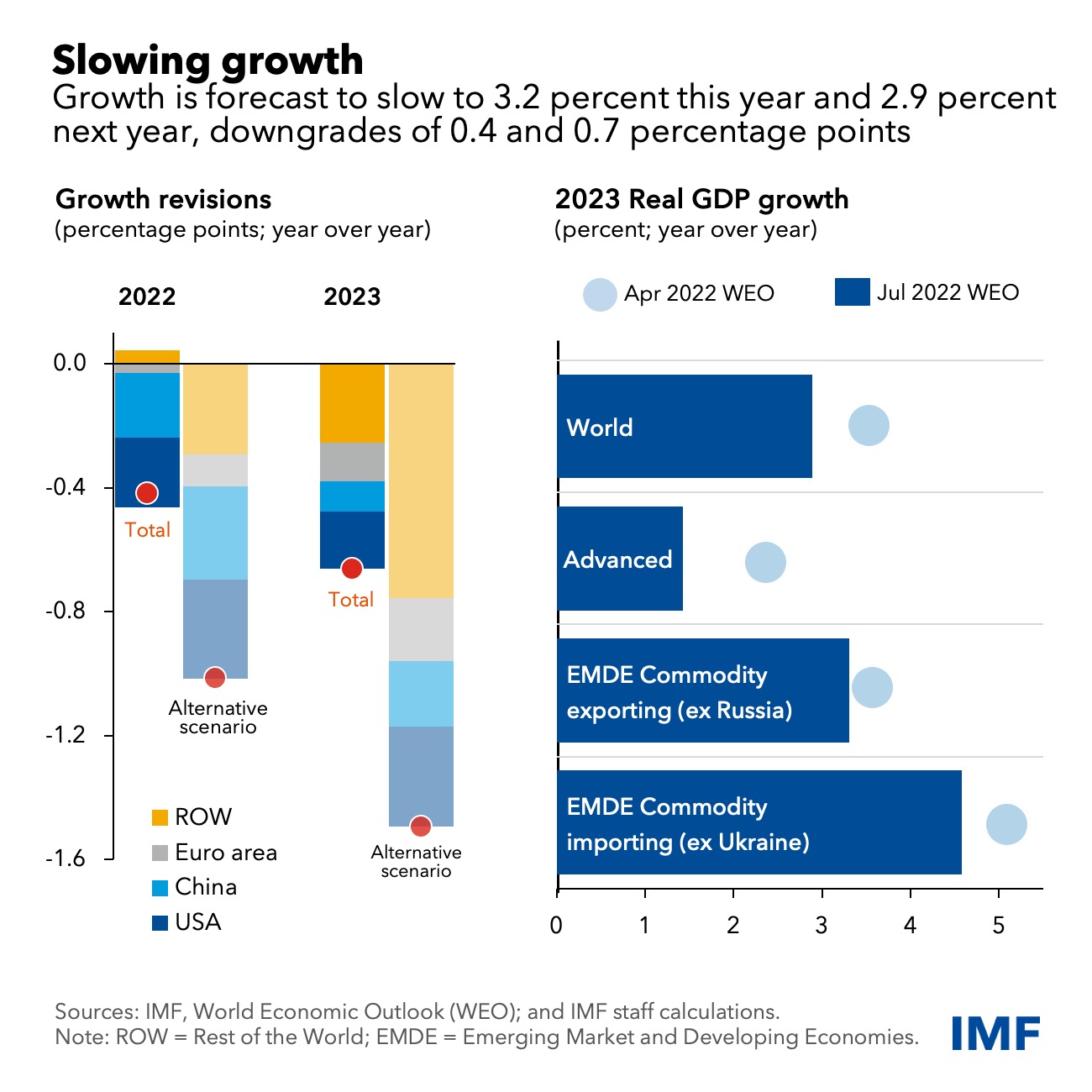Cina memberikan pengaruh negatif terbesar. Negara dengan perekonomian terbesar ketiga di dunia itu sedang kacang balau akibat kebijakan zero Covid-nya sendiri. Menurut Georgieva, pertumbuhan ekonomi Cina tidak sejalan dengan negara lain dan bahkan menganggu perdagangan serta investasi.