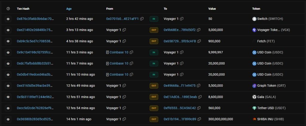 Firma pelacakan blockchain Arkham Intelligence mencatat jumlah inflow penjualan yang dibukukan Voyager mencapai $100 juta per pekan. Data dari Etherscan mencatat Voyager telah menerima lebih dari 150 juta USDC yang setara Rp2,3 triliun dari bursa Coinbase dalam sebulan terakhir.