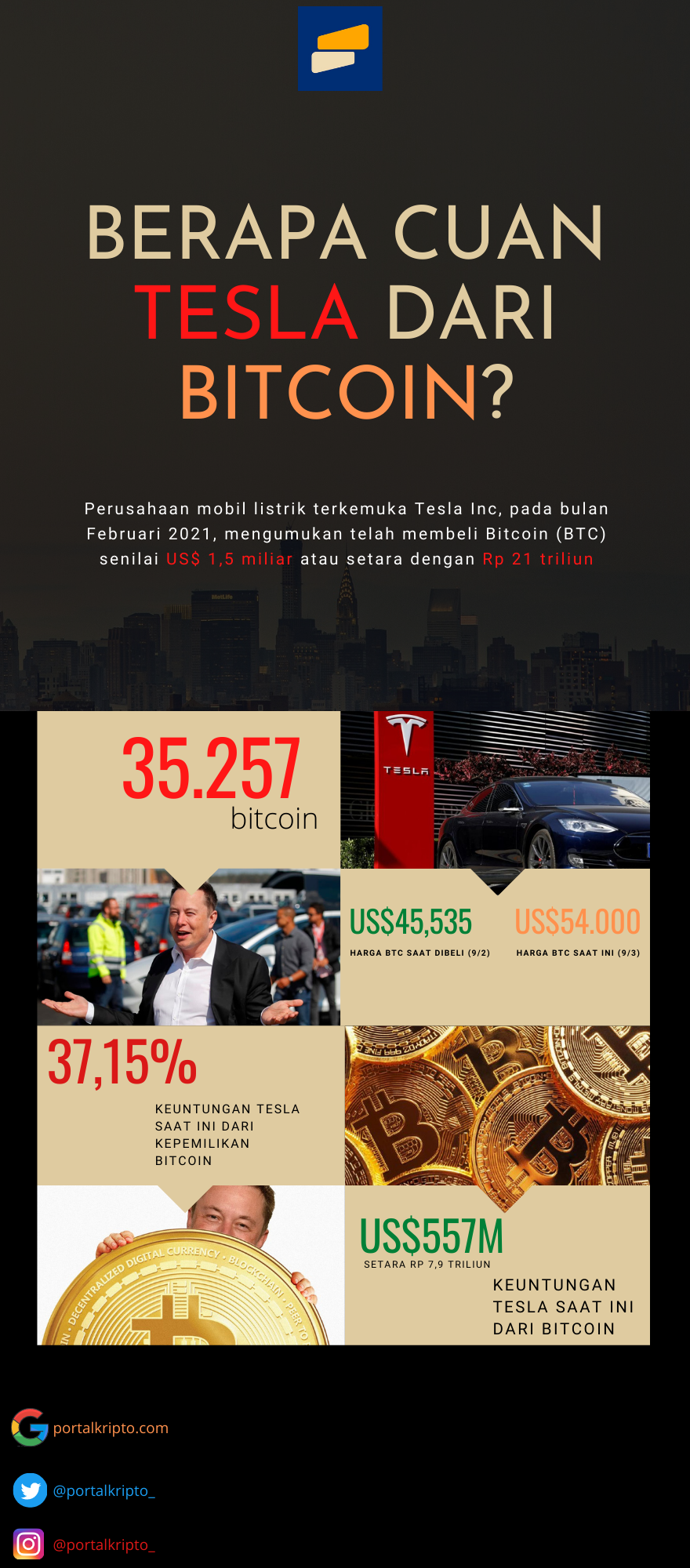[INFOGRAFIK] Sudah Berapa Cuan Tesla Dari Bitcoin Saat Ini