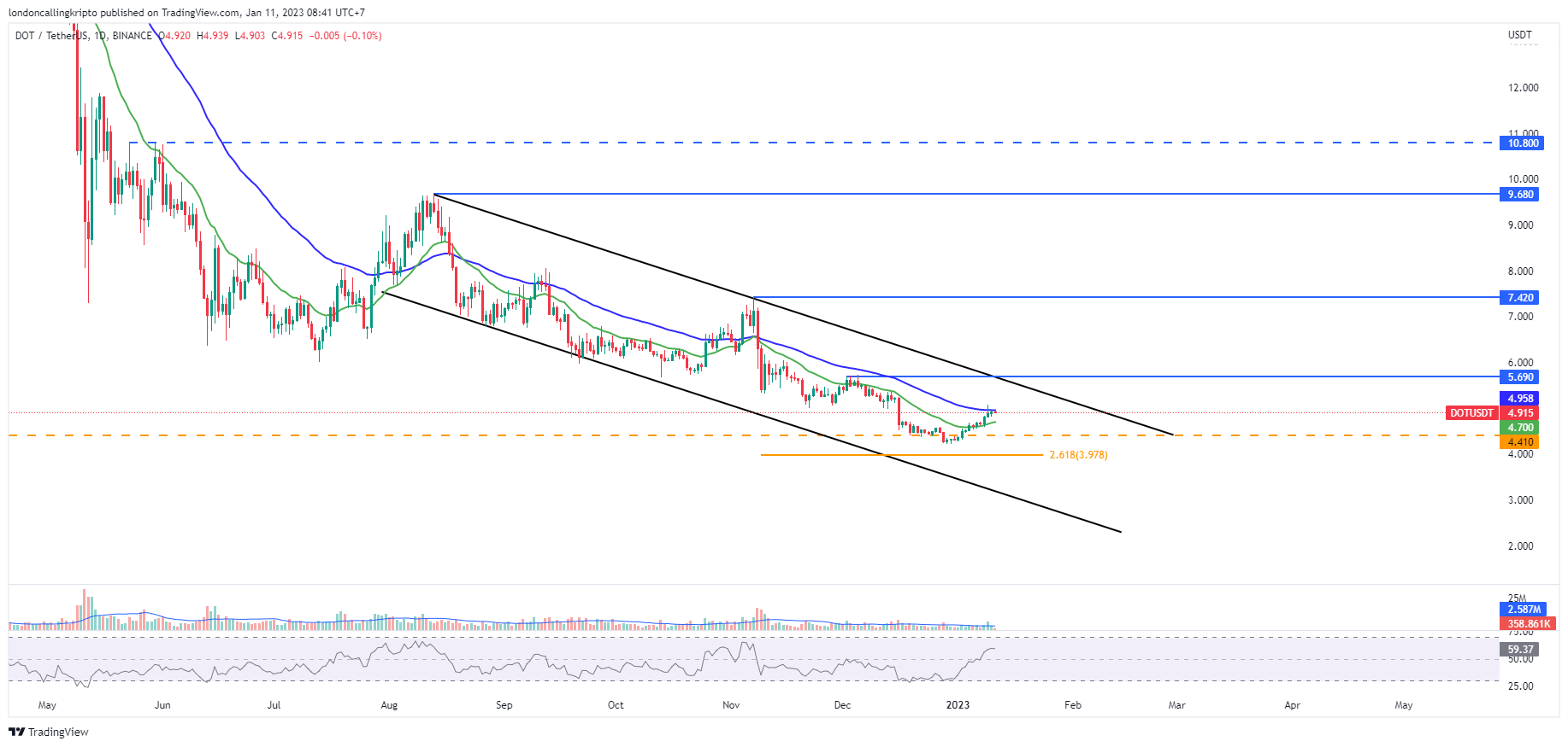DOT/USDT daily chart Binance. Source: TradingView. By: Arli Fauzi