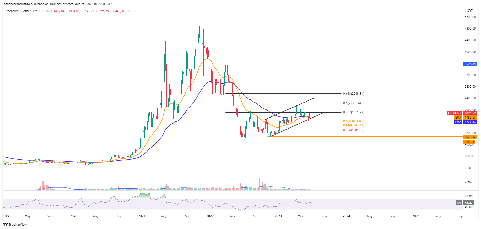 ETH/USDT weekly chart Kucoin. Source: TradingView. By: Arli Fauzi.