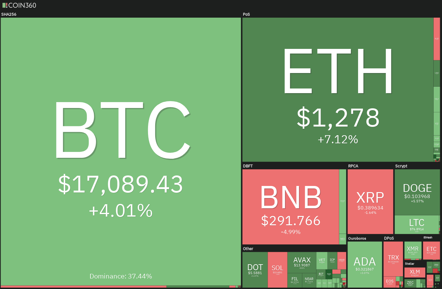 Weekly candle BTC pagi ini ditutup pada harga $17.108, level tertinggi berada pada harga $17.317 dan level terendah berada pada harga $15.992.